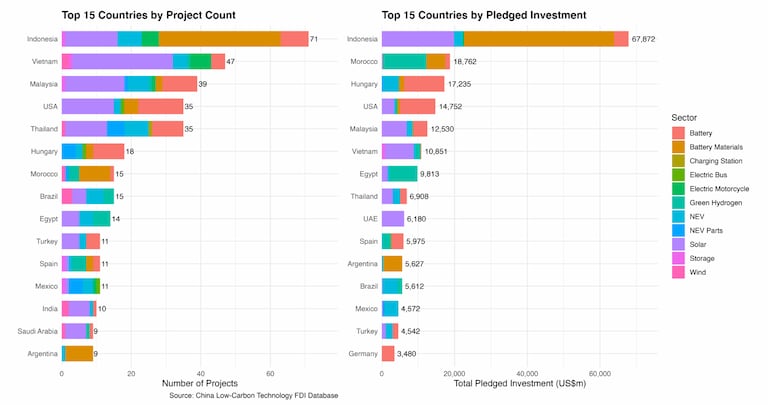 La région Moyen-Orient et Afrique du Nord (MENA) a vu sa part dans les projets bas carbone chinois bondir: plus de 20% des nouveaux projets en 2024, représentant près de 50 milliards de dollars, selon la base de données du Net Zero Policy Lab.