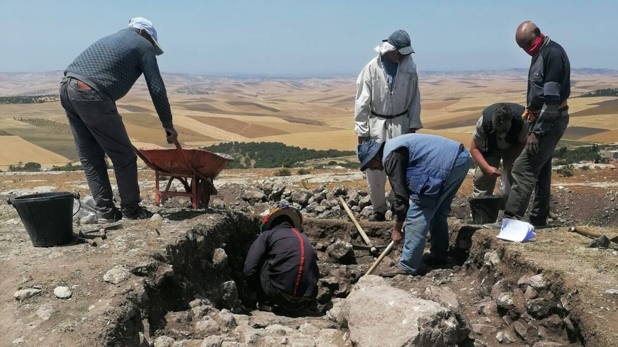 Lors des travaux de fouille de la première tour de guet romaine découverte à Volubilis en 2023.