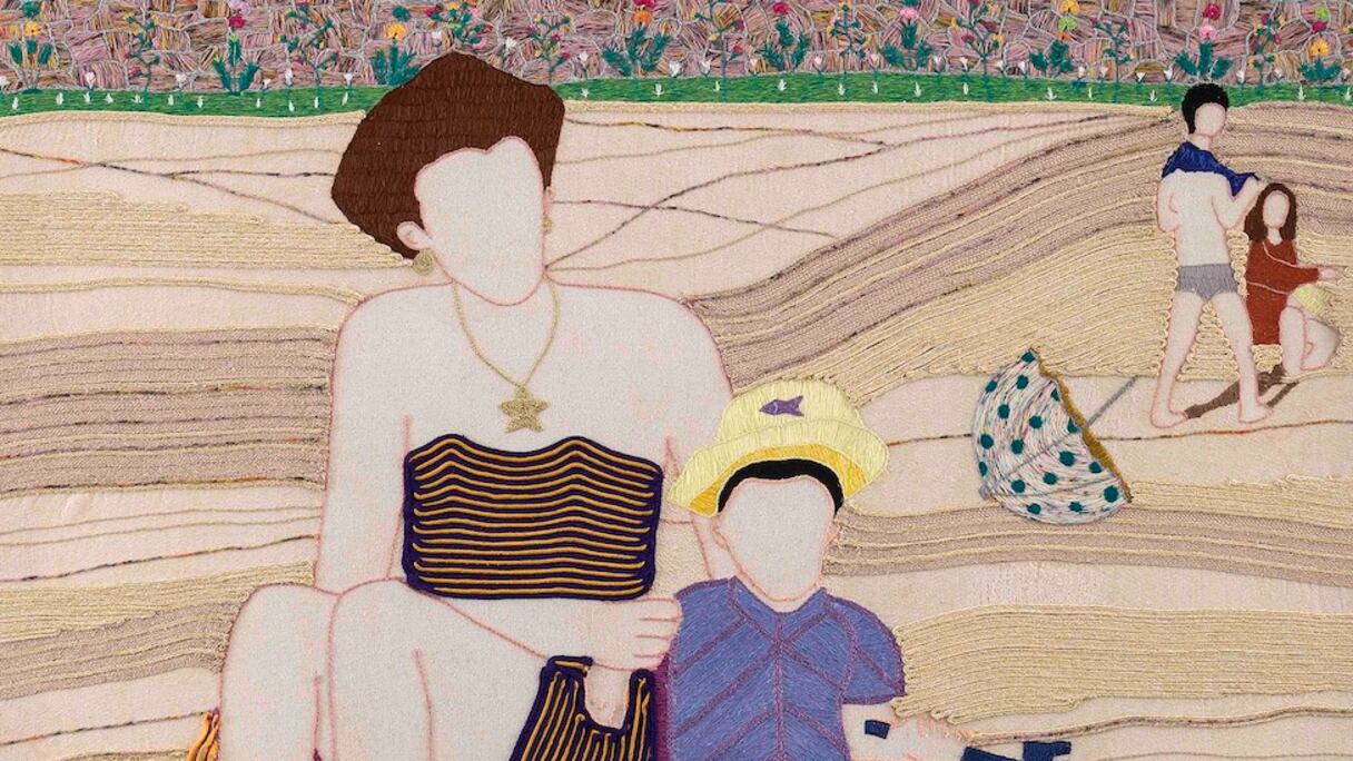 Fusionnant peinture et broderie, Margaux Derhy renoue avec son enfance et se plonge dans les archives familiales pour transposer les personnes fixées dans d’anciennes photographies dans un univers merveilleux, dotant d’une douce féerie ses propres souvenirs et fabriquant peu à peu une autofiction qu’elle nomme «Mémoire Vive».