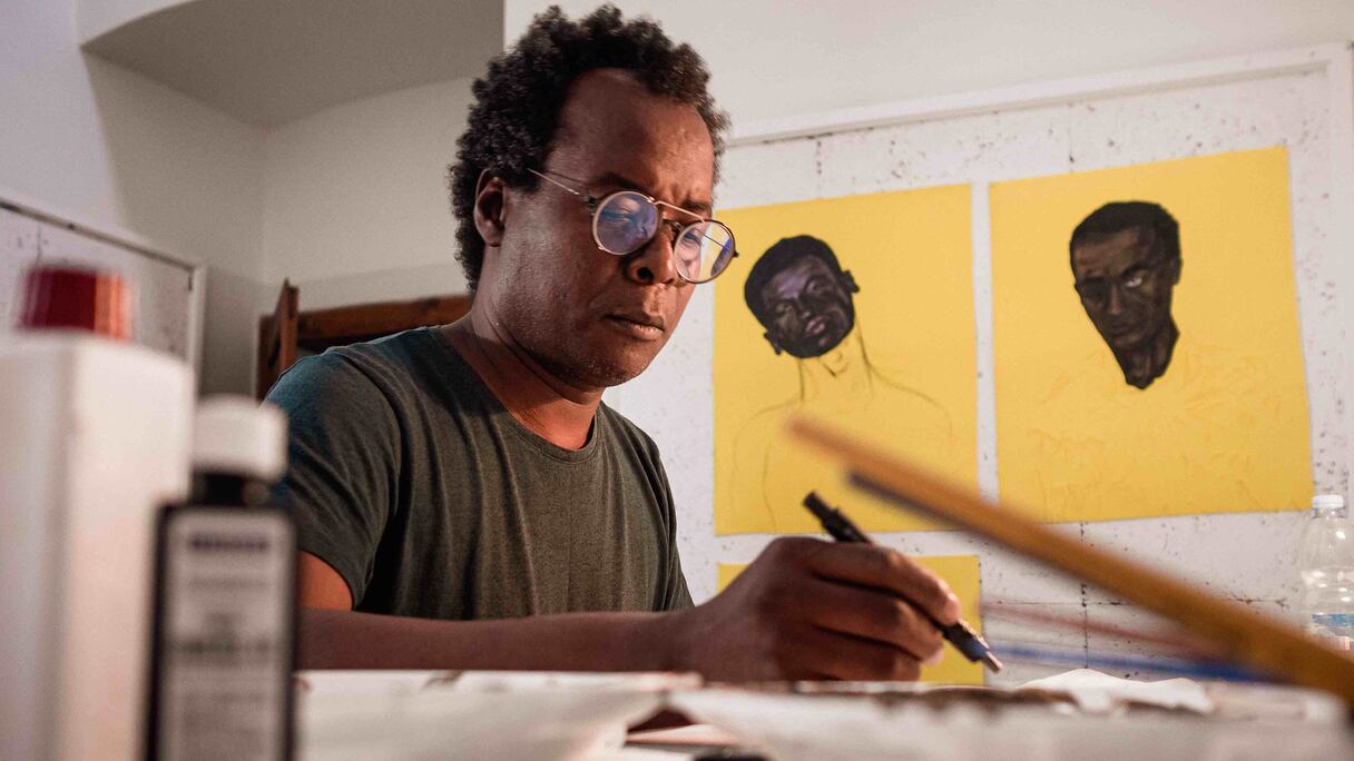 Le corps constitue un thème aux ramifications multiples dans l’œuvre de M’barek Bouhchichi. Moulé, sculpté, dessiné, peint, il est mis en exergue à travers un kaléidoscope de signes, de fragments (presque votifs) et d’images qui donnent à voir une préoccupation majeure chez l’artiste : peindre des hommes et des femmes marocaines à la peau noire.