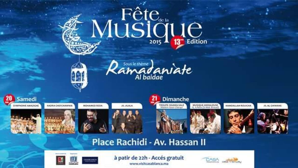 Dans le cadre de la troisième édition de la fête de la musique, le Conseil régional du Tourisme de Casablanca organise, en partenariat avec « Casablanca Events & animations » et avec l’aide de l’ONMT, les 20 et 21 juin, «Ramadaniates Al Baidae»: une programmation musicale riche et variée avec la participation d’artistes de renom.