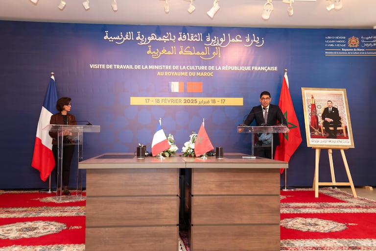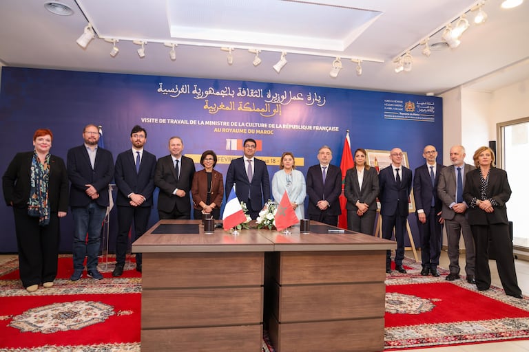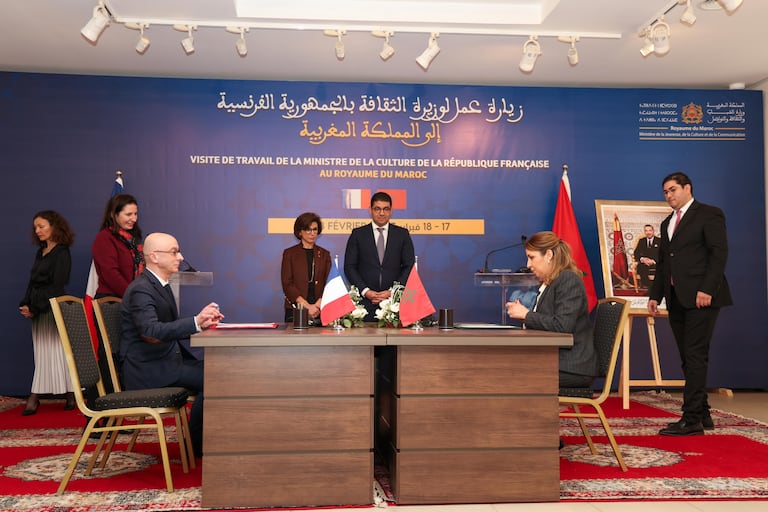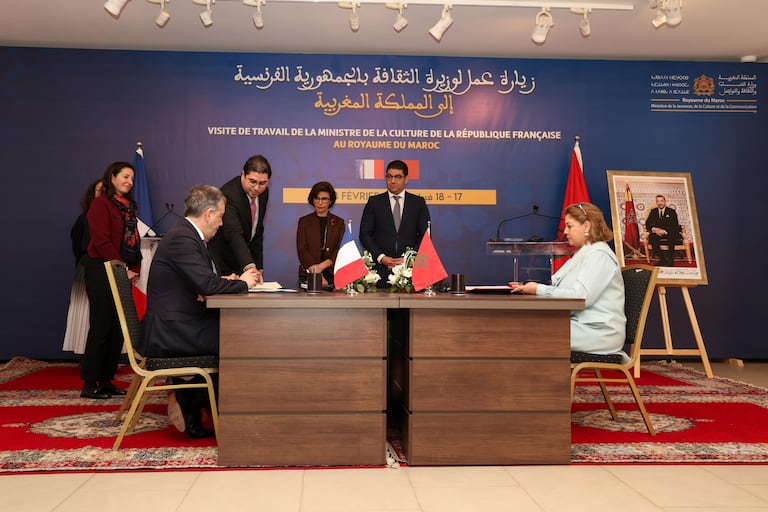 Lors de la signature des accords de renforcement de coopération culturelle entre le Maroc et la France.