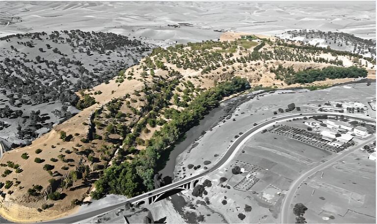 Vue aérienne du site archéologique d'Oued Beht, dans la province de Khémisset.