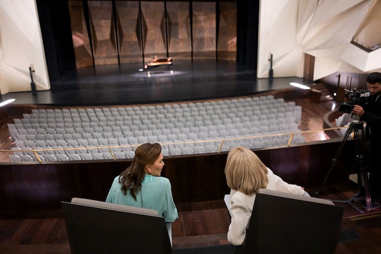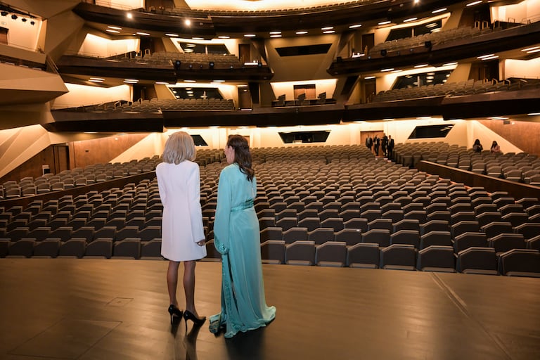 La princesse Lalla Hasnaa et Brigitte Macron au Théâtre royal de Rabat, le 29 octobre 2024.