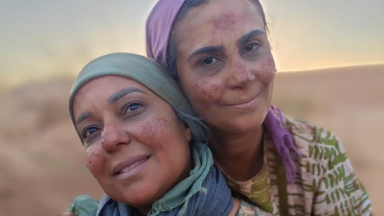Dr Imane Kendili et Dr Alia Bencheikh lors du tournage du film Les évadés de Tindouf