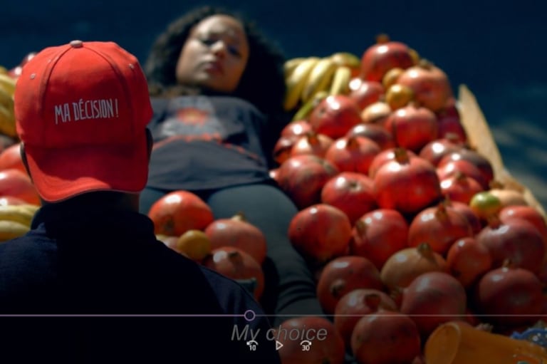 Dans le premier film dévoilé ce mercredi, on voit une jeune femme suspendue au milieu de carcasses de viande dans une boucherie. Face à la caméra, elle raconte: "Comme diraient les gars de Betweenatna, "problem a 3chiri!". Quand je me balade dans la rue, je sens les regards des gens sur moi. Ils me suivent, me scrutent. Les gens n'ont aucune décence, ils te dévisagent sans gêne. Ils ne me voient pas comme un être humain, mais comme un bout de viande."