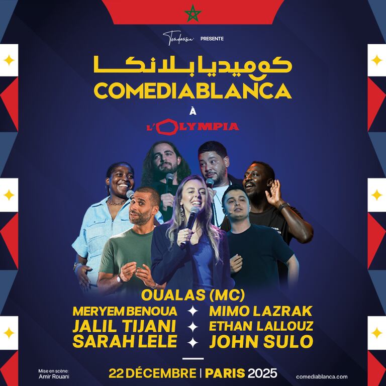 Gad Elmaleh l’avait laissé entendre, Saad Lahjouji le confirme: Comediablanca prend son envol au-delà des frontières. Le festival d’humour, lancé à Casablanca il y a deux ans à peine, démarre sa première tournée internationale le 22 décembre 2025 à l’Olympia de Paris, salle mythique où se produiront pendant une heure et demie Oualas, Meryem Benoua, Jalil Tijani, Sarah Lele, Mimo Lazrak, Ethan Lallouz et John Sulo.