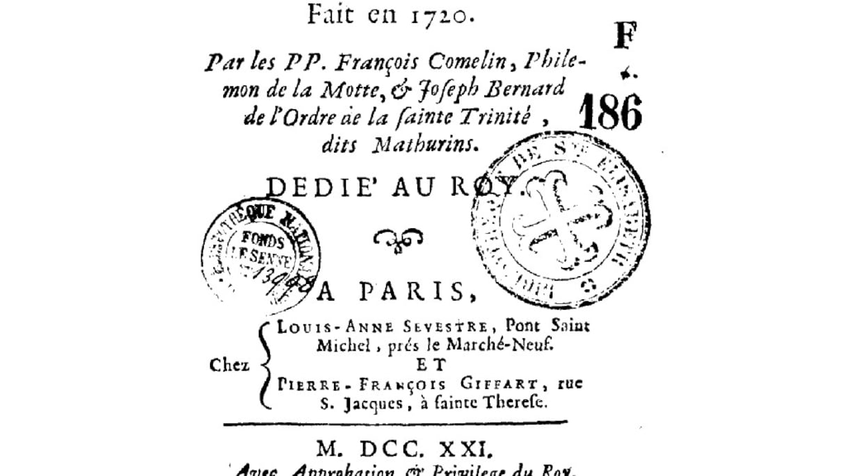 60 ans après, en 1720, les livres sur Alger ont toujours un seul thème: les captifs européens et les corsaires turcs qui sèment la zizanie en mer. On retiendra le fascinant «Voyage pour la rédemption des captifs fait à Alger et Tunis» par trois auteurs (François Comelin, Philémon de La Motte et Joseph Bernard), BNF, qui revient comme tous les livres présentés ici sur le trafic humain élevé en institution dans la funeste ville. Il ne ressort rien d’autre en 300 ans, aucun livre diplomatique, relation de voyage ou témoignage positifs.