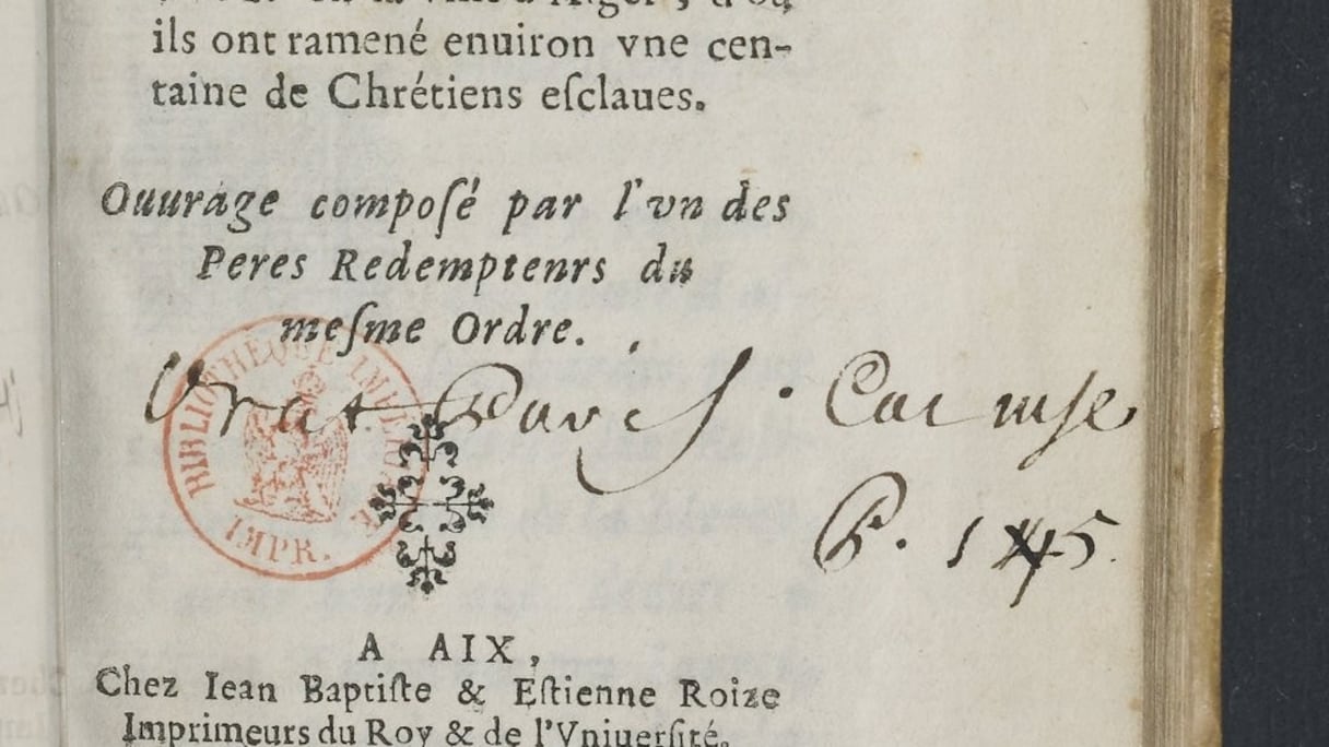 Ou encore ce titre éloquent: «Relation de la captivité du sieur Emanuel d’Aranda, où sont décrites les misères, les ruses et les finesses des esclaves et des corsaires d’Alger» d’Emanuel d’Aranda (1657, Réserve des livres rares à Paris).