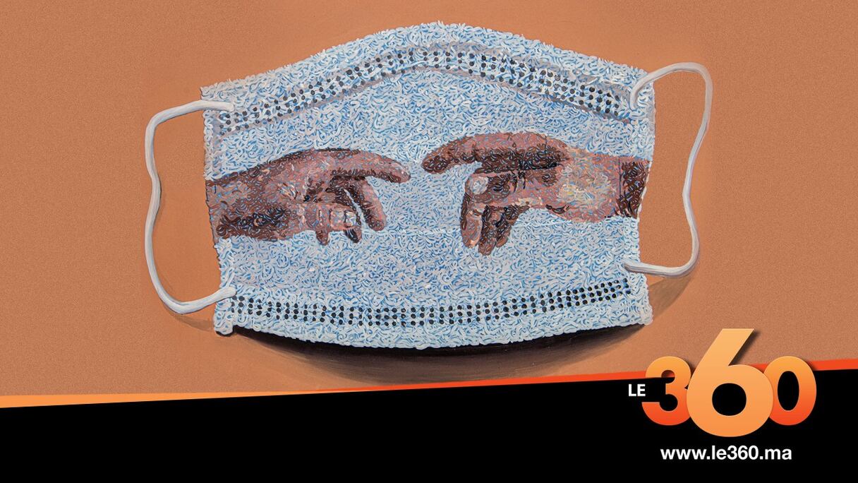 Parmi les œuvres d’art présentées, on ne peut manquer le "Maroc que j’aime" de Mohamed Qannibou, qui donne à voir ce masque aux couleurs du drapeau national. L’artiste a été particulièrement attentif à l’importance des masques de protection pendant cette pandémie et se dit fier que le Maroc ait pu produire suffisamment de masques pour pouvoir se mettre à l’abri d’une pénurie qui deviendrait un indicateur du risque de propagation du coronavirus.