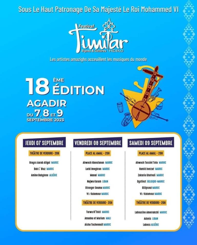 Lire aussi : Festival Timitar 2023: Zakaria Ghafouli, Najwa Karam, Labess et Dystinct au programme