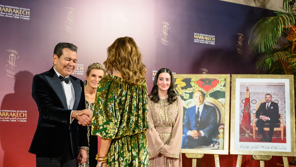 Le prince Moulay Rachid et la princesse Lalla Oum Keltoum ont également reçu les salutations de Faïçal Laraïchi, vice-président délégué de la Fondation du Festival international du film de Marrakech, de Mélita Toscan du Plantier, conseillère du président de la Fondation, de Rémi Bonhomme, directeur artistique du Festival, de Azeddine Benmoussa, conseiller financier du président au sein de la Fondation du FIFM, de Fadwa Megzari, secrétaire générale du Festival, de Saad Imani, trésorier général, de Naoufal Bensouda, directeur financier du Festival, ainsi que de Ali Hajji, coordinateur général du Festival.