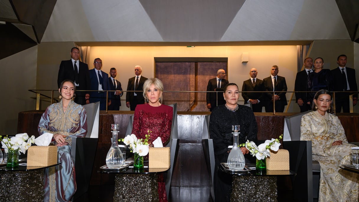 Au terme du spectacle, les princesses Lalla Khadija, Lalla Meryem et Lalla Hasnaa, accompagnées de Brigitte Macron, ont été saluées par Samira Kadiri, soprano, Ahlima Mhamdi, mezzo-soprano, Dina Bensaïd, cheffe d’orchestre et pianiste concertiste, Marouan Benabdallah, pianiste, Driss El Maloumi, compositeur et virtuose du Oud, et Younes Terfas, directeur de l’Orchestre symphonique royal.