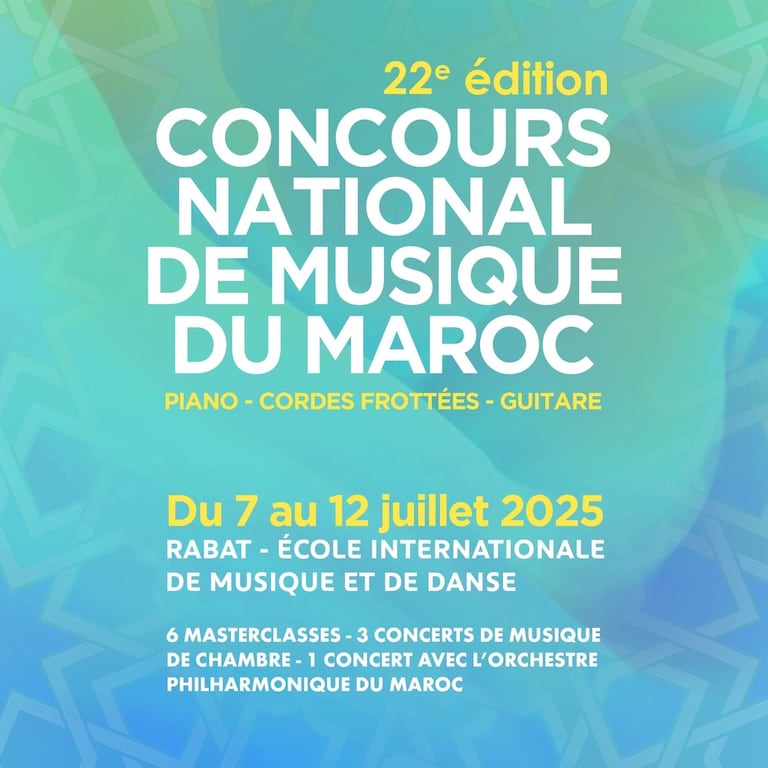 Dans un écrin consacré à l’excellence artistique, l’École internationale de musique et de danse (EIMD) de Rabat accueillera, du 7 au 12 juillet 2025, la 22ème édition du Concours national de musique du Maroc (CNMM). Organisé par la Fondation de l’Académie du Royaume du Maroc, ce rendez-vous annuel s’est imposé comme une scène de référence pour les jeunes talents musicaux venus des quatre coins du pays.