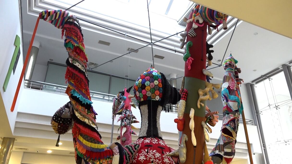 La première œuvre représente le personnage de Mary Poppins, qui, avec «sa forme tentaculaire et sa palette de couleurs vives, se distingue par ses six protecteurs surgissant d’un corps central. Elle combine habilement des textures industrielles et des tissus cousus à la main».