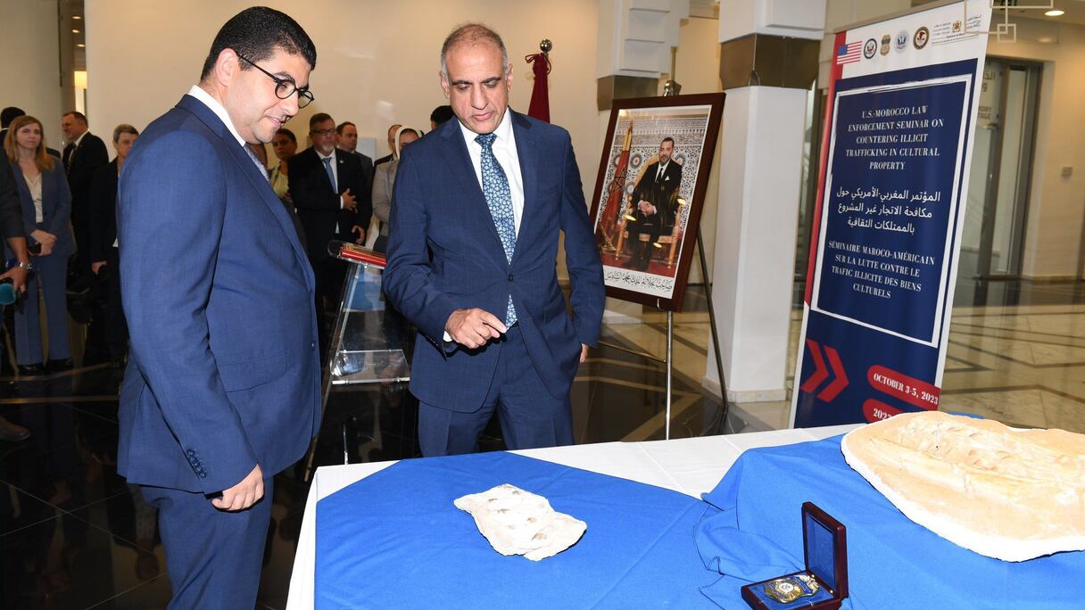 Dans une allocution de circonstance, Mehdi Bensaïd a rappelé la restitution par les États-Unis, il y a plus d’un an, d’un crâne fossile de crocodile, notant que cette nouvelle restitution s’inscrit dans le cadre du Mémorandum d’entente signé entre le Maroc et les États-Unis en janvier 2020, afin de lutter contre le trafic illicite des biens culturels.