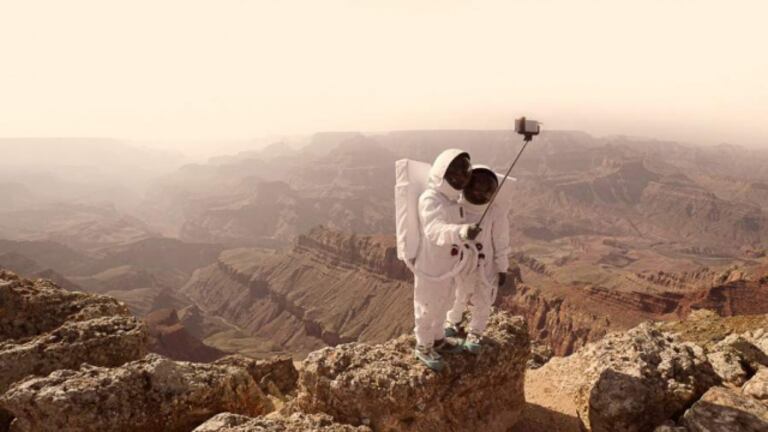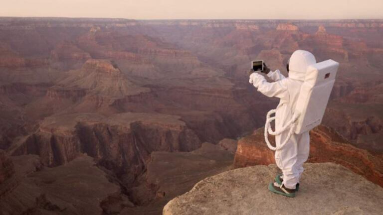 A travers le personnage d’un robot astronaute nommé «Curiosité», l’artiste simule des paysages provenant de la planète rouge et s’interroge sur la façon qu’aura un être humain d’interagir avec l’espace. En selfie solo ou accompagné, cette série de photos est une éventuelle réponse à comment l’humanité vivrait un trip à Mars. L’artiste a sa petite idée. Sans vraiment contempler la beauté des paysages et les sons qui les entourent, les êtres humains auraient tendance, selon Julien Mauve, à poser devant leur caméra, naturellement et sans trop se poser de questions.