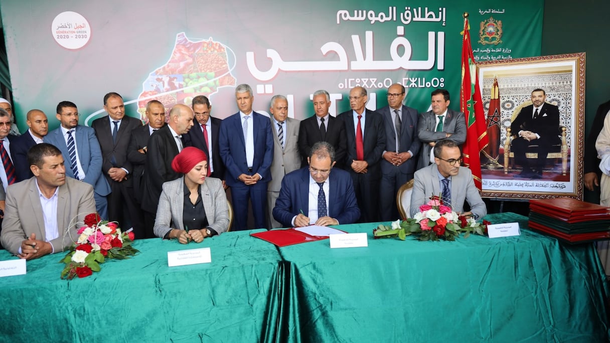 Le lancement officiel de la campagne agricole 2023-2024 s’est déroulé en présence du gouverneur de la province de Settat, du président de la région Casablanca-Settat, du président de la Fédération des chambres d’agriculture, des présidents des chambres régionales de l’agriculture, du président du directoire du Crédit Agricole du Maroc, des présidents des fédérations interprofessionnelles des filières de production, du représentant du président de la Confédération marocaine de l’agriculture et du développement rural (COMADER), de responsables de la Mutuelle agricole marocaine d’assurances (MAMDA) ainsi que de responsables centraux et régionaux du ministère de l’Agriculture, de la Pêche maritime, du Développement rural et des Eaux et forêts.
