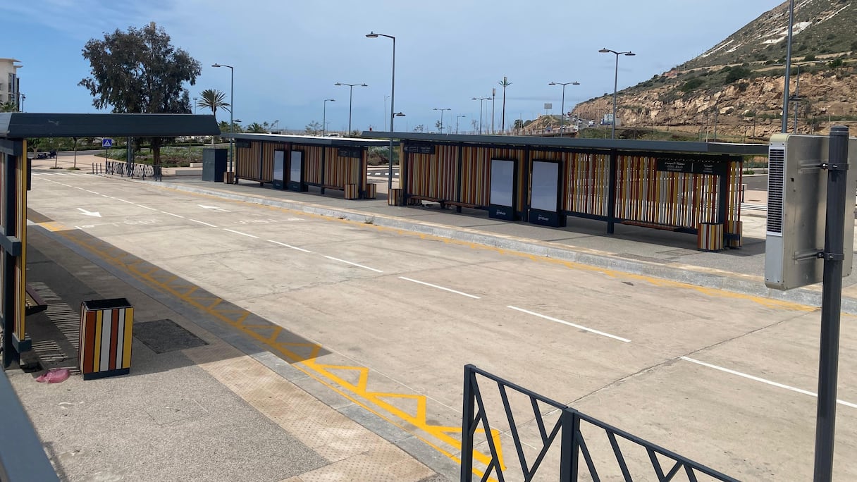 Une station de Trambus vandalisée à Agadir. (M.Oubarka/Le360)