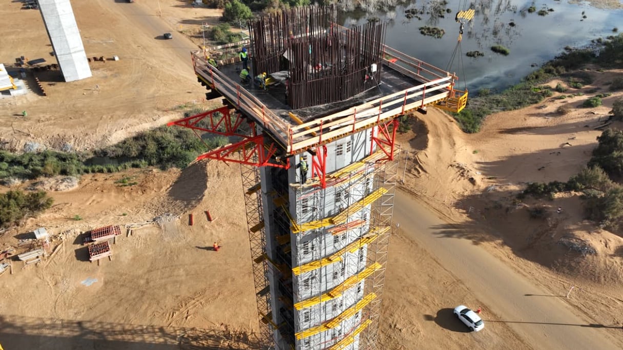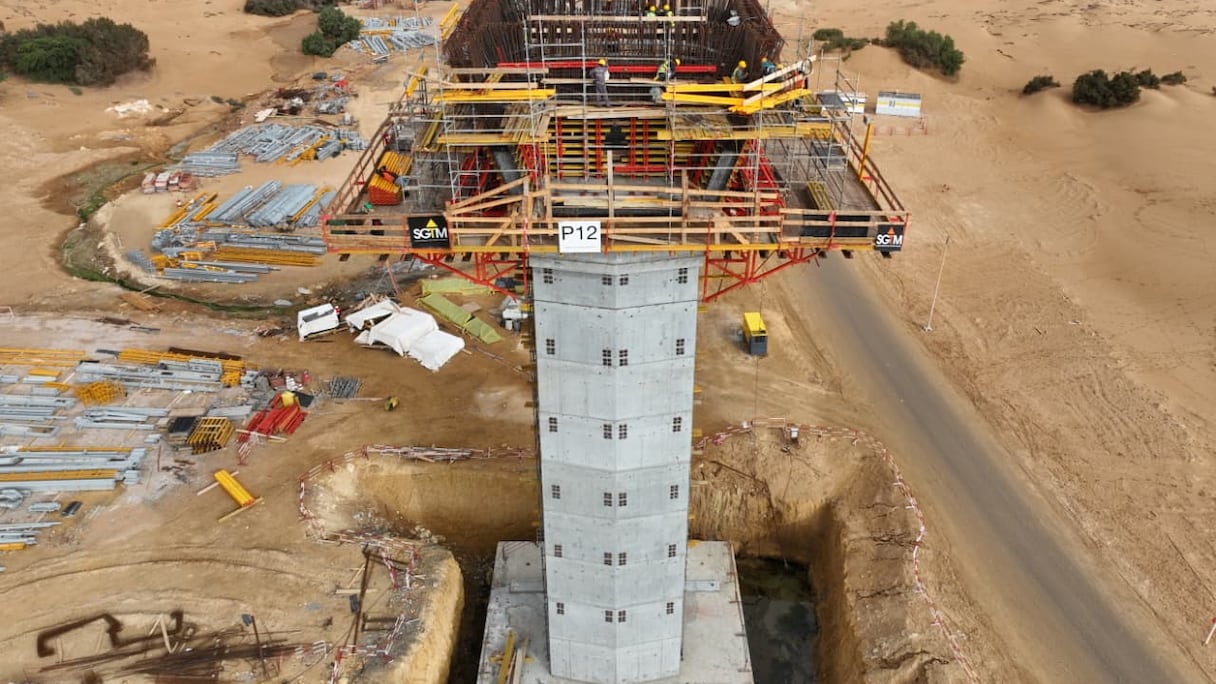 Depuis le sommet de l’un des imposants piliers du pont, dont la hauteur dépasse les cinquante mètres, le directeur central de la voie express Tiznit-Dakhla, Mbarek Fanch, indique que le taux d’avancement des travaux de cet ouvrage d’art a atteint 36%. Il souligne que la progression régulière du chantier est le fruit d’une planification minutieuse et d’une mobilisation constante des ressources humaines et techniques.