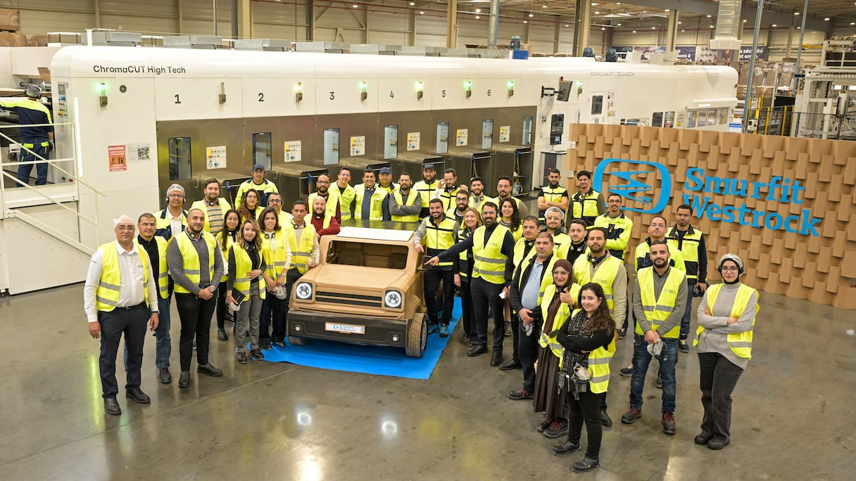 Lors de la visite, Smurfit Westrock a dévoilé une réplique d’un véhicule NeoMotors entièrement réalisée en carton ondulé, conçue et fabriquée par l’équipe locale de design à Rabat, avant d’être présentée au dirigeant.