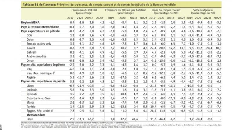 La reprise économique dans la région MENA est «timide et inégale», écrit la Banque mondiale dans un rapport publié ce jeudi 7 octobre 2021, consacré aux perspectives économiques des pays de cette zone. D’après les estimations de l’institution multilatérale, le PIB de la région MENA s’est contracté de 3,8 % en 2020 et devrait croître de seulement 2,8 % en 2021, alors que la pandémie de Covid-19 se poursuit.