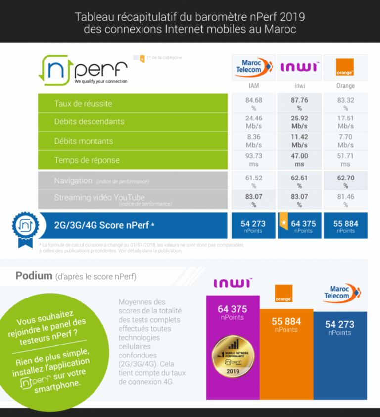 nPerf propose une étude sur la qualité de l’Internet mobile qui repose sur des tests en crowdsourcing au Maroc, reflétant ainsi l’expérience réellement vécue par les utilisateurs finaux des différents opérateurs.