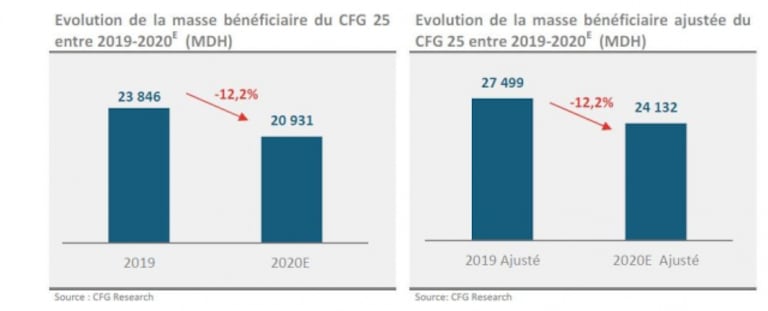 Dans ce contexte, les bénéfices des sociétés cotées à la Bourse de Casablanca devraient être sérieusement impactés et enregistrer une baisse à deux chiffres en 2020. D’après le scénario central de CFG Bank, «la masse bénéficiaire des valeurs composant notre indice de référence CFG 25, devrait selon nos prévisions enregistrer une baisse de 12% en 2020 par rapport à 2019».