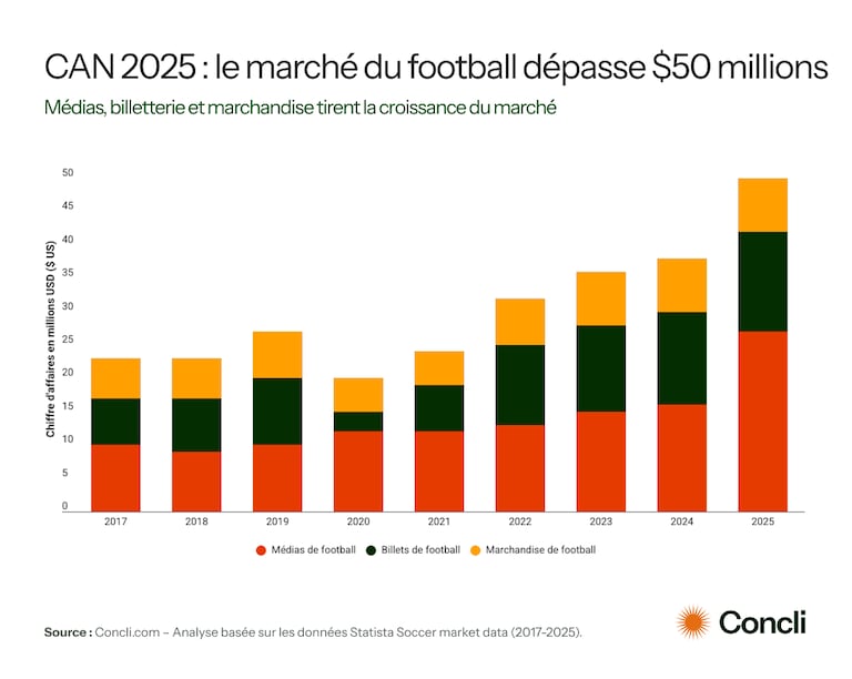 Les chiffres issus de l’analyse menée par Concli, à partir des données du Soccer Market (2017-2025) de Statista, dessinent les contours d’un marché du football marocain en pleine mutation. L’économie du ballon rond ne se limite plus aux recettes de billetterie et aux affluences dans les stades; elle se nourrit désormais d’une audience numérique en forte expansion, portée par le streaming, les réseaux sociaux et la consommation de contenus sportifs en ligne.
