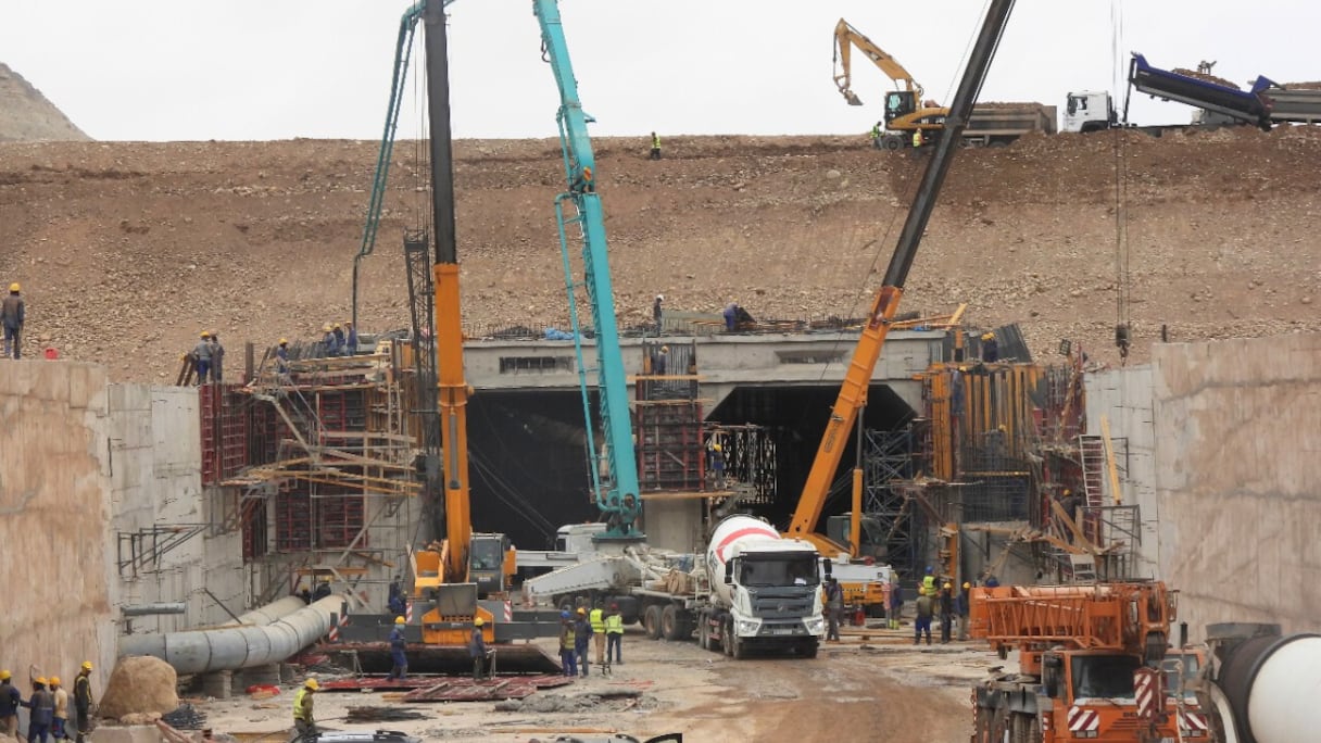 Aperçu des travaux de construction du barrage Aït Ziat, dans la province d’Al Haouz.