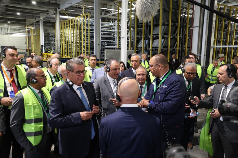 Lors de la cérémonie d’inauguration de l’extension de l’usine du groupe automobile multinational Stellantis, mercredi 16 juillet à Kénitra.