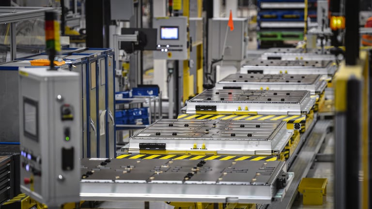 Une ligne de production dans une usine de batteries pour véhicules électriques. (Photo d'illustration)