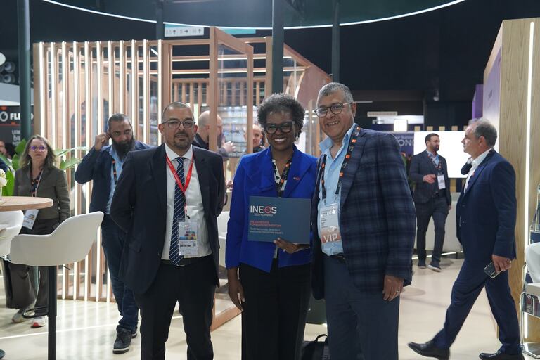Reda Bakkali, CEO de INEOS, et Marissa Scott, consule générale des États-Unis à Casablanca, mardi 15 avril 2025 à Marrakech. (INEOS)