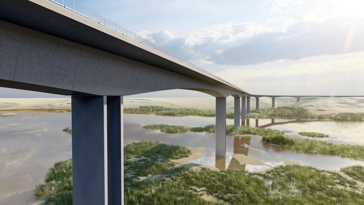Voici à quoi ressemblera le grand pont sur l’Oued Sakia El Hamra, qui fait partie du projet de la voie express, une fois livré.. Le360