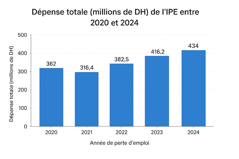 La facture de l’Indemnité pour perte d’emploi (IPE) ne cesse de s’alourdir. Selon les chiffres arrêtés au 1er octobre 2025, les dépenses totales ont franchi la barre des 2 milliards de dirhams depuis 2020, atteignant un cumul de 2,085 milliards sur les cinq dernières années et demie, indique la Caisse nationale de sécurité sociale (CNSS) qui gère ce dispositif.