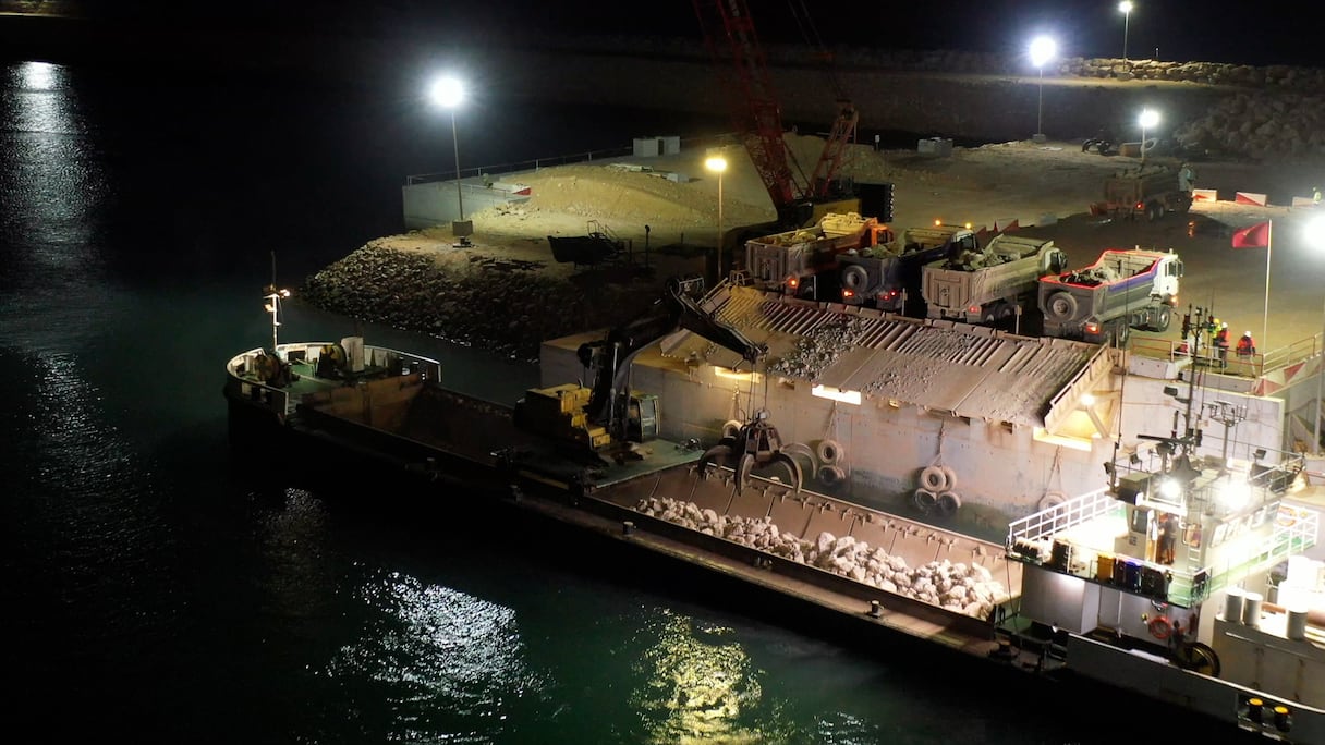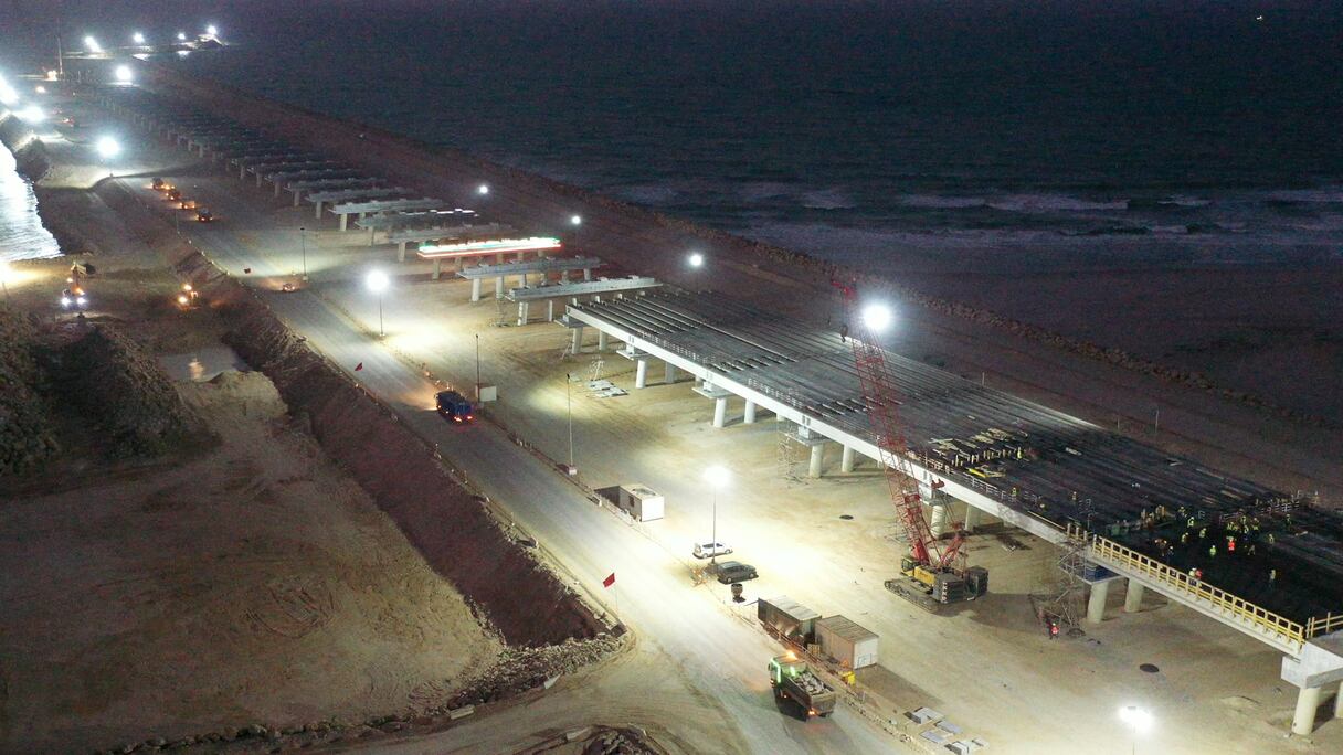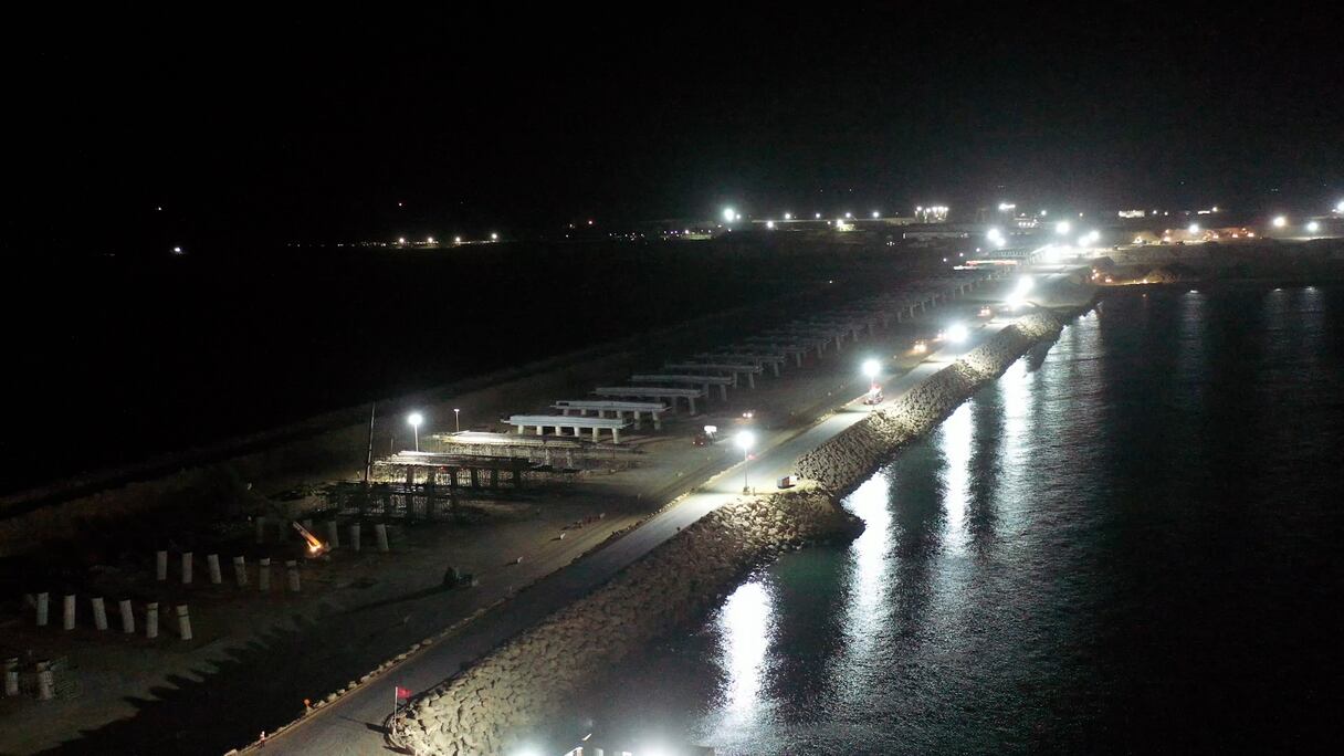 La réalisation du port Dakhla Atlantique se poursuit jour et nuit. (S.Bouaamoud/Le360).