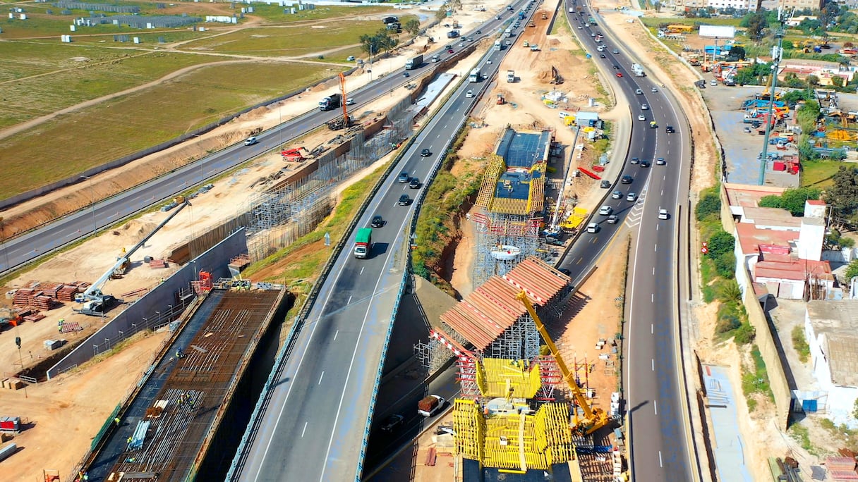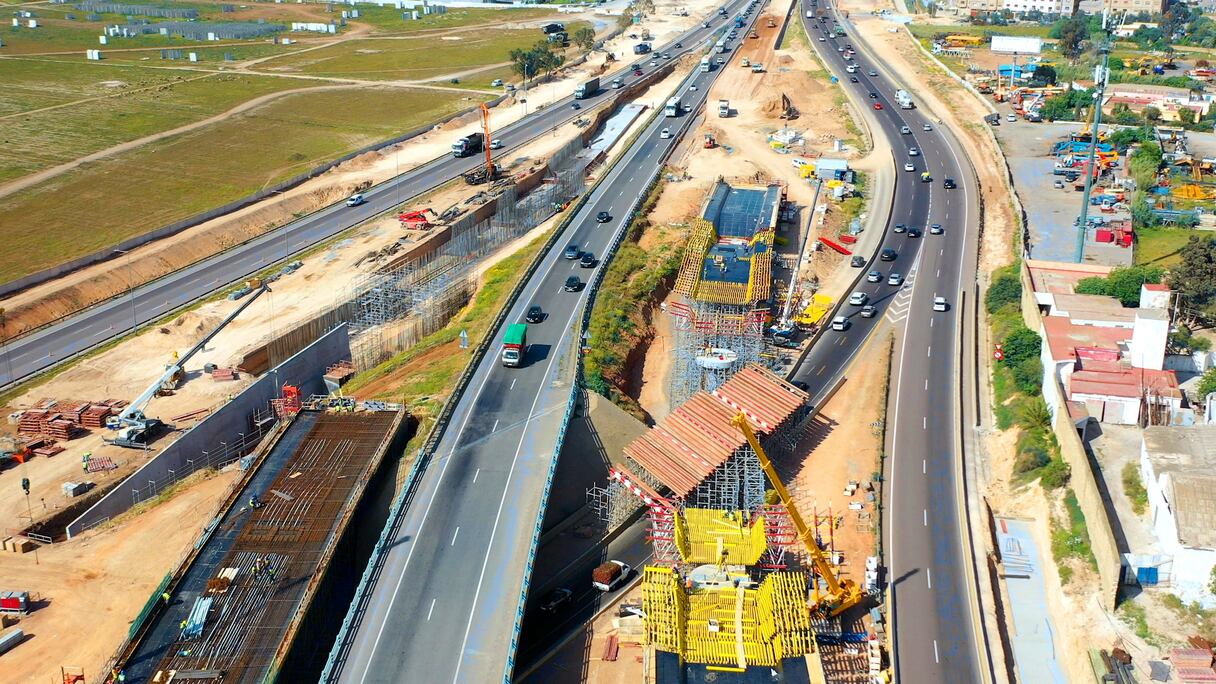 Images aériennes de l'avancement de la transformation du nœud autoroutier de Aïn Harrouda. (A.Et-Tahiry/Le360)