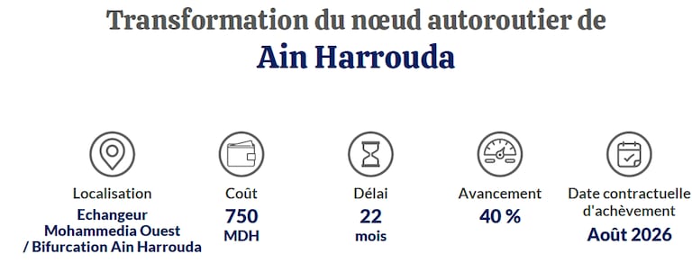 Le remodelage du nœud autoroutier d’Aïn Harrouda progresse rapidement. Selon Wahib El Masbahi, chef de projet à la société nationale des Autoroutes du Maroc (ADM), «le taux d’avancement global est actuellement de 40%. Ce projet devrait être achevé et livré avant la fin de l’année 2025».