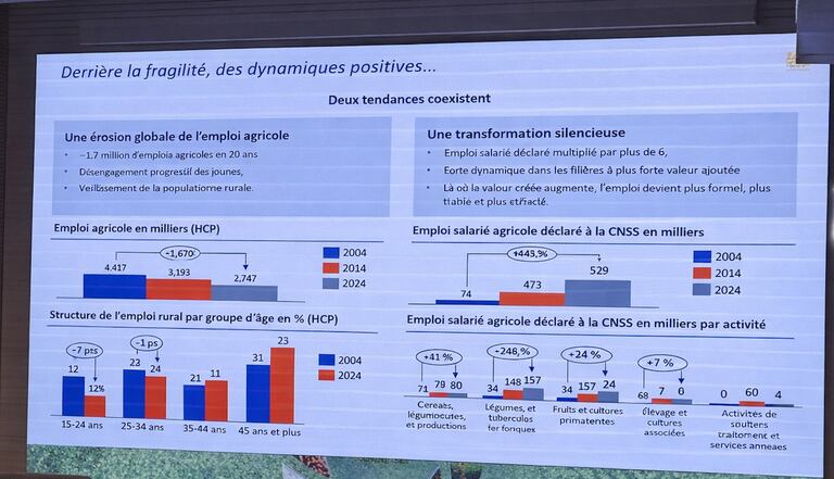 L’emploi agricole s’érode à l’échelle nationale, pendant qu’un salariat formel à plus forte valeur ajoutée gagne progressivement du terrain.