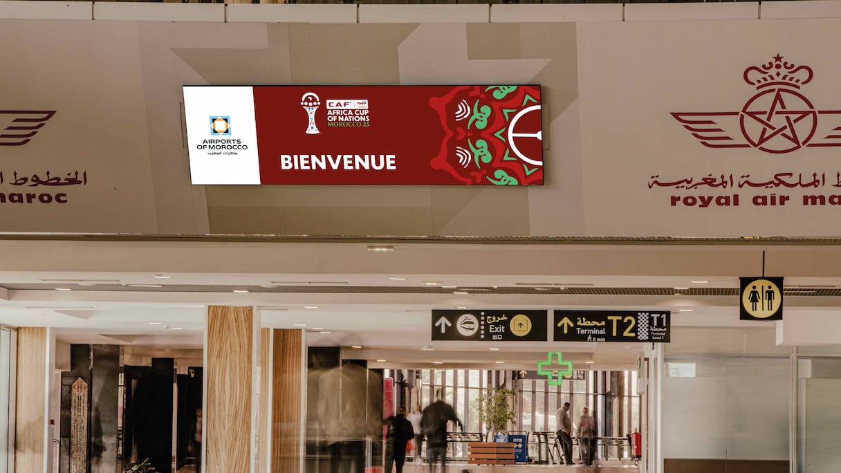 «Mais l’accueil des voyageurs ne se limite pas à la logistique», explique L’Économiste. Dès la descente de l’avion, les passagers sont plongés dans l’atmosphère festive de la CAN. Des arches monumentales, des trophées géants et des bus aux couleurs de la compétition transforment les terminaux en véritables scènes d’animation. Les panneaux lumineux rouges, couleur emblématique de l’événement, ponctuent le parcours des voyageurs, tandis que le salon VIP, entièrement décoré aux codes visuels de la compétition, reçoit les délégations officielles. À l’extérieur, une réplique géante du trophée devient un lieu incontournable pour les photos. Des enfants jouent avec des ballons dorés et des points d’information multilingues, en arabe, en français et en anglais, distribuent guides et QR codes localisant les bureaux de change à proximité.