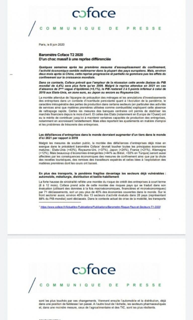 Dans son baromètre trimestriel, Coface prévoit que l’ampleur de la récession cette année (-4,4%) sera plus forte qu’en 2009. Malgré la reprise attendue en 2021 en cas d’absence de deuxième vague d’épidémie, le PIB resterait 2 à 5 points inférieur à celui de 2019 aux Etats-Unis, en zone euro, au Japon ou encore au Royaume-Uni.