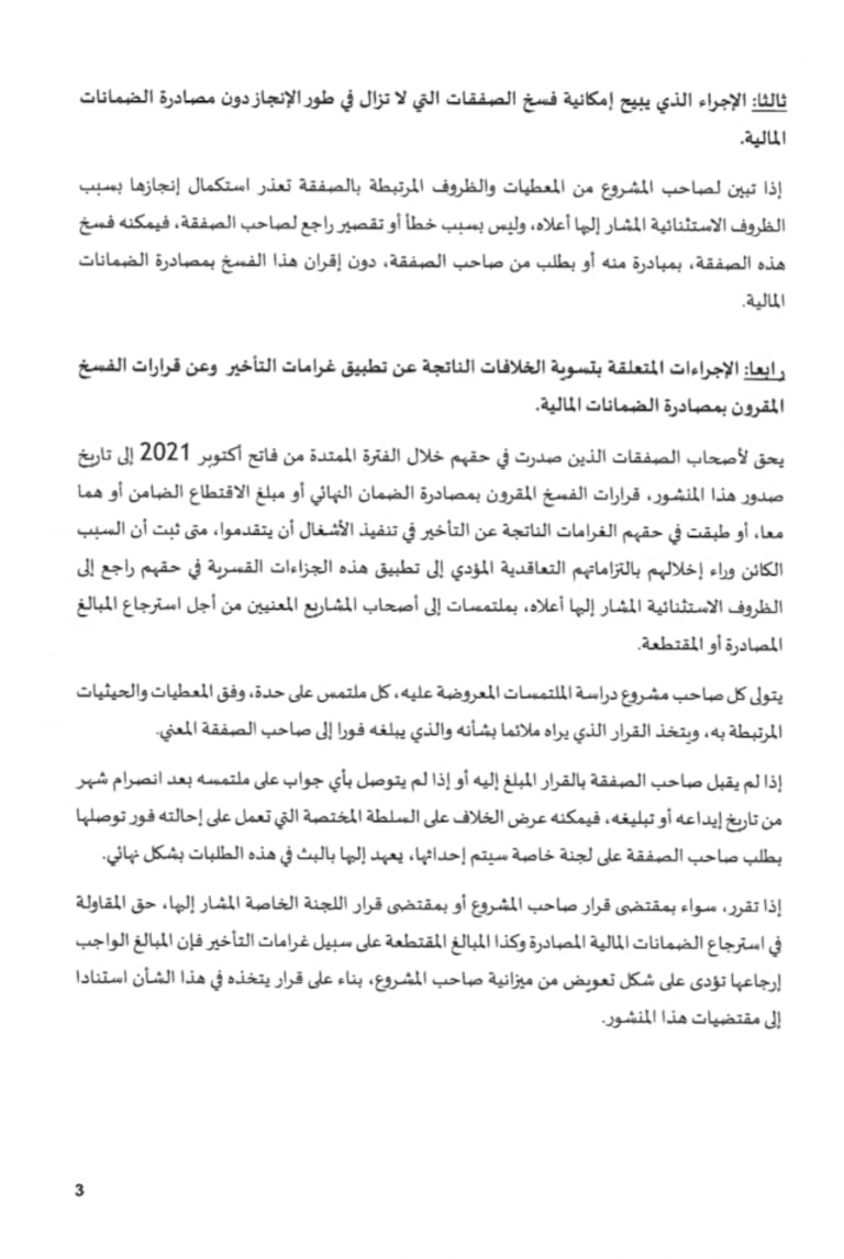 Les entreprises concernées peuvent demander aux maîtres d’ouvrages de leur restituer le montant des cautions et pénalités de retard, en cas de résiliation d’un marché durant la période entre le 1er octobre 2021 et le 18 avril 2022. Une commission dédiée sera créée pour statuer sur les différends de cette nature.
