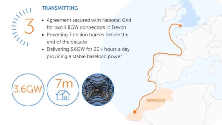 «Le projet électrique Xlinks Maroc-Royaume-Uni sera une nouvelle installation de production d'électricité entièrement alimentée par l'énergie solaire et éolienne combinée à une installation de stockage de batteries. Situé dans la région marocaine riche en énergies renouvelables de Guelmim Oued Noun, il couvrira une superficie d'environ 1.500 km2 et sera connecté exclusivement à la Grande-Bretagne via des câbles sous-marins HVDC de 3.800 km», est-il indiqué sur le site Internet de Xlinks.