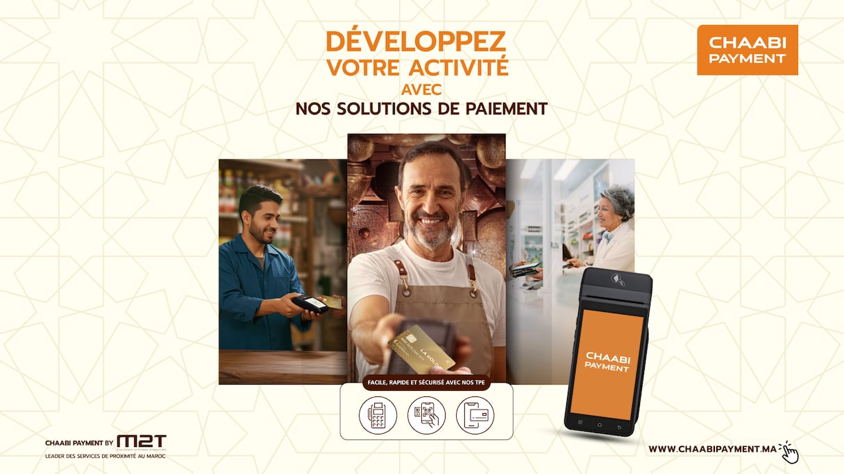 Forte de près de 25 ans d’expérience dans les services de paiement et s’appuyant sur un vaste réseau de proximité à travers les enseignes Tasshilat et Chaabi Cash, M2T franchit une nouvelle étape avec le lancement de «CHAABI PAYMENT», une solution de paiement simple accessible et sécurisée, souligne M2T dans un communiqué.