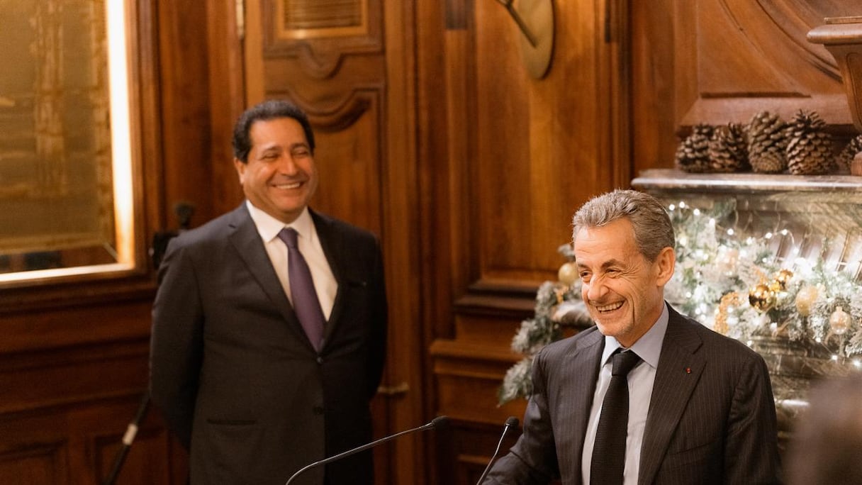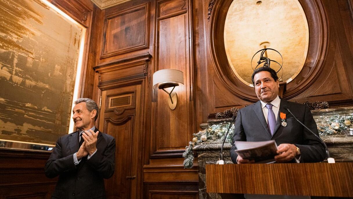 Farid Bennis, Président-directeur général des laboratoires Laprophan, et Nicolas Sarkozy, ancien président français.