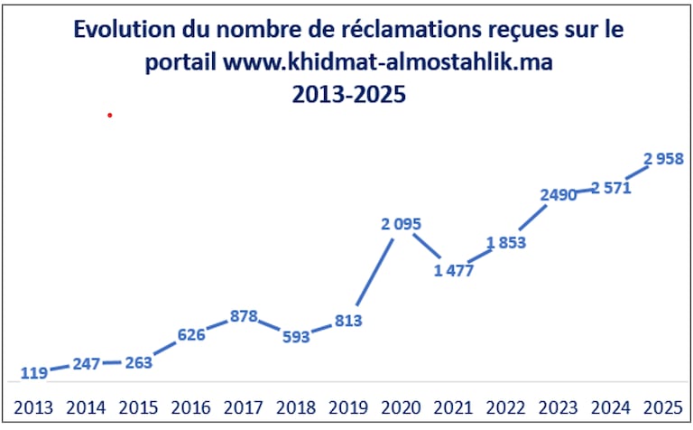 Par ailleurs, les statistiques communiquées par le ministère révèlent une hausse spectaculaire du nombre de réclamations déposées sur cette plateforme au cours de ces dernières années, passant de seulement 119 en 2013 à 2.958 en 2025.