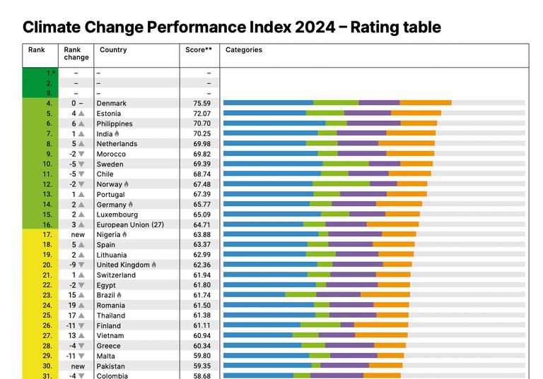 Publié annuellement depuis 2005, à l’initiative de Germanwatch, NewClimate Institute et Climate Action Network International, le CCPI est un outil de surveillance indépendant pour suivre les performances de protection climatique de plus de 60 pays. Il vise à améliorer la transparence de la politique climatique internationale et permet de comparer les efforts et les progrès de chaque pays en matière de protection du climat.