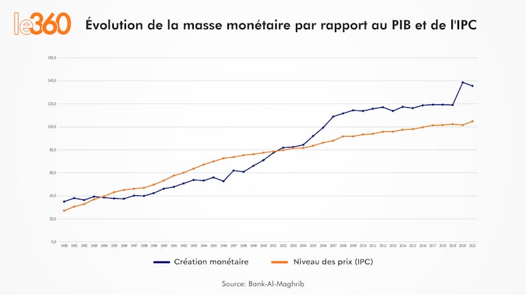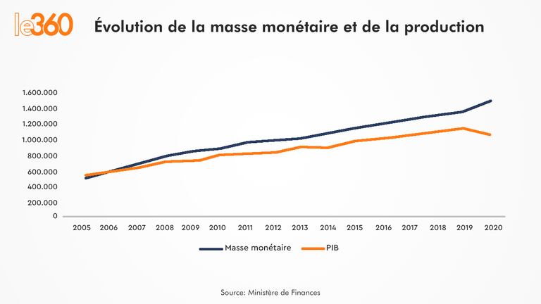 Ce fut bien le cas au Maroc où, depuis l’année 2005, la masse monétaire est systématiquement supérieure à la production intérieure.