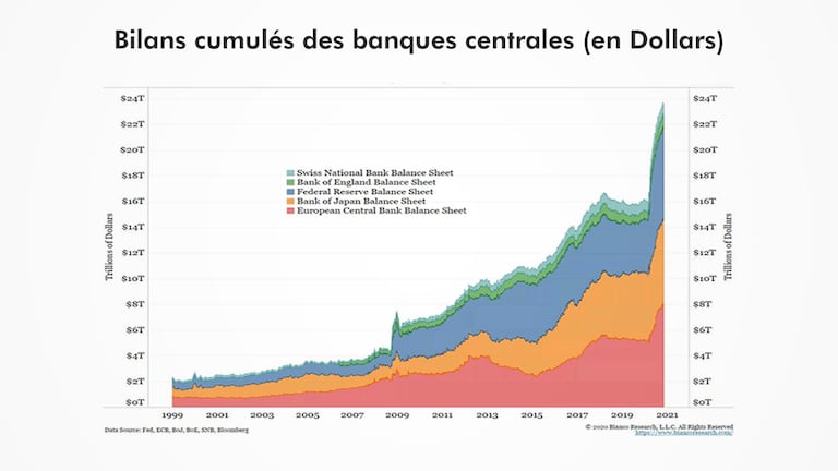 La «théorie quantitative de la monnaie» se révèle encore une fois extrêmement pertinente dans l’explication des limites de la création monétaire pour stimuler la croissance économique. Celle-ci est résumée par la fameuse formule : MV = Py