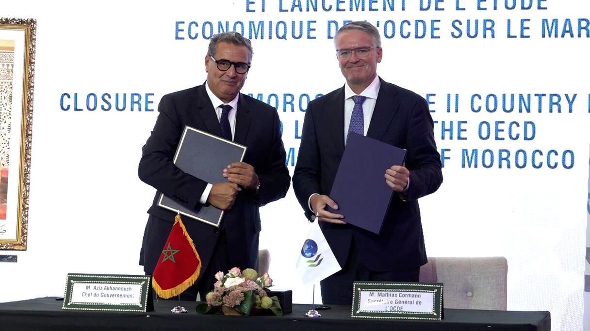 Une cérémonie de clôture du «Programme pays Maroc phase II et lancement de l’étude économique de l’OCDE sur le Maroc» a été organisée, ce mercredi 11 septembre 2024 à Rabat, sous la présidence du chef du gouvernement, Aziz Akhannouch, de la ministre de l’Économie et des Finances, Nadia Fettah, et du secrétaire général de l’OCDE, Mathias Cormann.